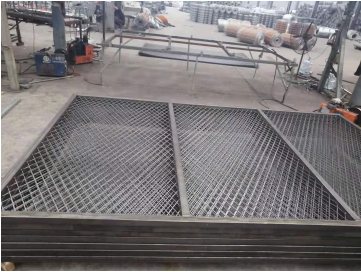 第二步需要加工外框,隔離網(wǎng)使用專用模具把對(duì)應(yīng)外形尺寸固定好。連接邊耳也是在這一步加工的。這一步完成后,隔離網(wǎng)的整體形狀就出來(lái)。(同一 步驟焊接立柱,立柱邊框,立柱頂端的Y叉)