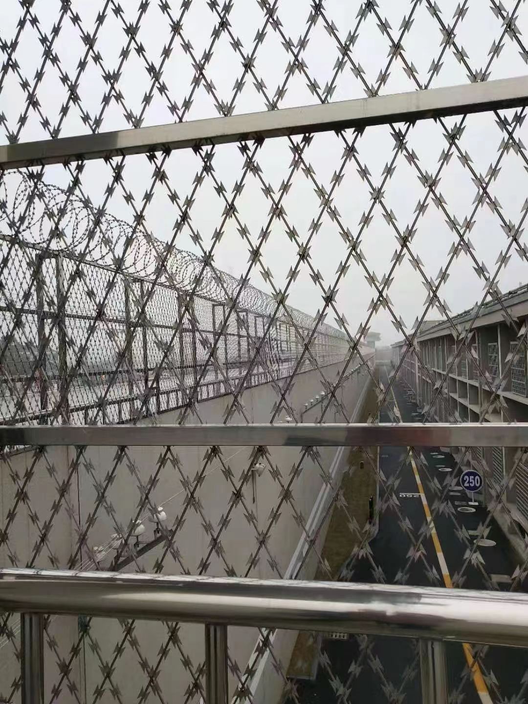監(jiān)獄帶刺Y型柱防護(hù)網(wǎng)又稱(chēng)監(jiān)獄護(hù)欄網(wǎng)或監(jiān)獄隔離柵監(jiān)獄防護(hù)網(wǎng)的防護(hù)等級(jí)比較高,一般要頂部帶 蛇腹型刀刺網(wǎng)來(lái)進(jìn)行加強(qiáng)防護(hù)。在監(jiān)獄防護(hù)網(wǎng)的立柱頂部做V型造型,然后在v型中架設(shè)蛇腹型刀刺網(wǎng)。這樣監(jiān)獄防護(hù)網(wǎng)的立柱就形成了一個(gè)型,由此作為一個(gè)立柱既可以安裝防護(hù)網(wǎng)網(wǎng)片又可以安裝蛇腹型刀刺網(wǎng),一柱兩用。