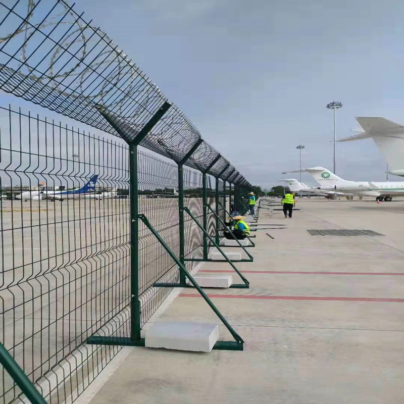 機場鐵絲網圍界常為熱鍍鋅后采用高質量的聚酯粉末靜電噴涂或浸塑工藝具有超高的防銹、防曬、防腐效果,同時顏色可選,能與環境有效融合到一起,美觀實用。機場鐵絲網圍界優勢實用性強,安全防護級別高,符合市場對質量和防護的要求;運輸方便,便于安裝適給不同的地形和地勢;通透性好,美觀大方,符合現代化審美需求;應用范圍廣,可以用于機場、監獄、軍事重地、核電站、場區等的隔離防護。