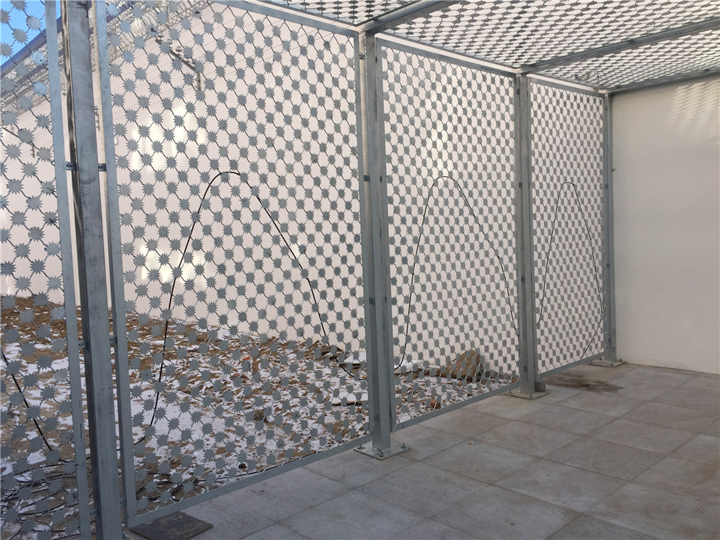 像梅花刺片的隔離網(wǎng)大家應(yīng)該都不陌生,經(jīng)常在監(jiān)獄里應(yīng)用,南方很多監(jiān)獄內(nèi)墻都是用的這種。我們北方很多是AB大門的通道使用這種梅花刺片隔離網(wǎng)。防攀爬防爆效果非常好,適合在這些特殊場合使用。