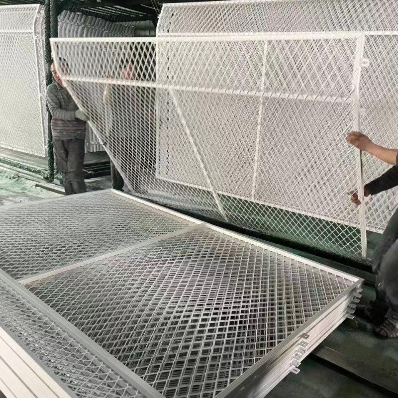 (7)立柱基礎混凝士強度達設計強度的70%以后,方可進行網片安裝。立柱、隔離網片及斜撐的制造加工要求在工廠集中制作完成以保證加工制作的質量。網片安裝后要求網面平整,無明顯的叫八現象,框架與立柱連接牢固,框架整體平順美觀。