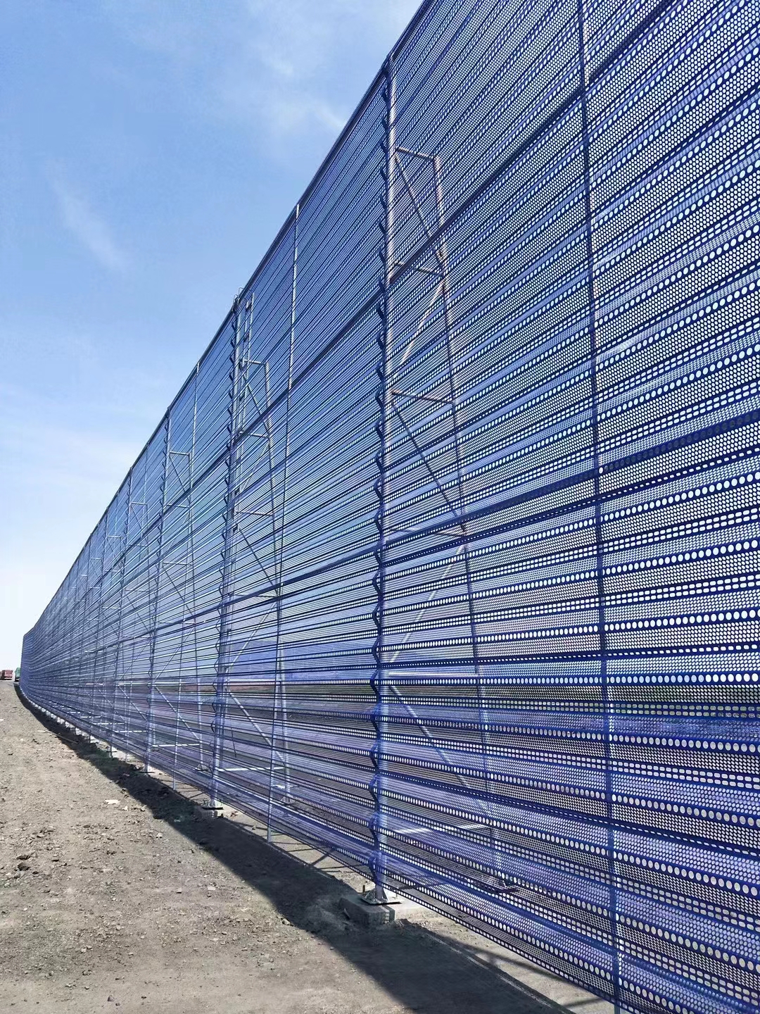煤田防風網的質量是重要的。工地防風抑塵網一次投資,長期受益。擋風抑塵墻設置后不僅使污染嚴重的地區環境得到有交的改良,而且實施擋風抑塵墻的煤場每年還節省煤數千噸,在取得良好社會效益的同時又獲得了大的經濟效益,美觀整齊的擋風抑塵墻也成為這些地區-道怡人的風景線。涂彩防風抑塵網此產品采用金屬原材料經機械組合模具沖孔、壓制、噴塑而成,具有強度高、韌性好、抗彎曲、抗老化、抗阻燃、耐高低溫、耐酸堿、 承受彎曲變形能力強等優良性能;經過特殊配方和工藝制作,可根據用戶需要制成各種厚度、顏色,具有使用壽命長、色彩鮮艷不易褪色等特點;綜臺抑塵效果良好,優于國內外同類產品。