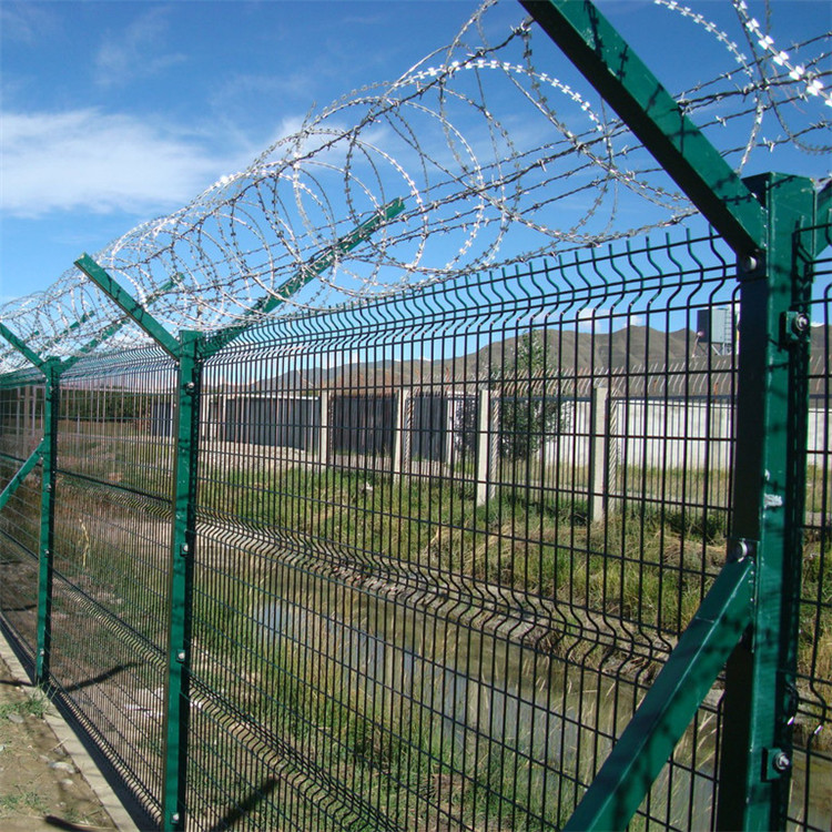 監(jiān)獄鋼網(wǎng)墻又稱作“Y型安全防御護網(wǎng)”,是由V型支架立柱,加強型焊接片網(wǎng)安全防盜連接件和熱鍍鋅刀片剌籠組成強度和安全防御性級別很高。現(xiàn)被廣泛應用在監(jiān)獄,軍事基地等高安全場所。在監(jiān)獄護欄頂部加裝刀片剌絲、刀片剌繩后又很好的增強了安全防護性能。監(jiān)獄鋼網(wǎng)墻運用在監(jiān)獄上,具有哪些優(yōu)勢?艾瑞金屬絲網(wǎng)為大家解析。