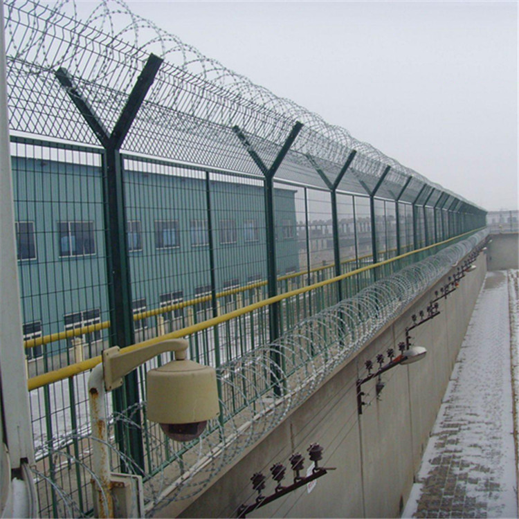 監(jiān)獄防沖跳網(wǎng)的主要作用就是防攀爬。主要是采用高強(qiáng)度的刀片刺網(wǎng)與普通防護(hù)網(wǎng)的結(jié)合,由V型支架立拄,加強(qiáng)型焊接片網(wǎng)安全防盜連接件和刀片剌網(wǎng)組成監(jiān)獄防沖跳網(wǎng)是一種新型防護(hù)網(wǎng),由銳利尖角鍍鋅鋼板或不銹鋼薄板做刀片鋼絲做芯線組合而成的防護(hù)器材。