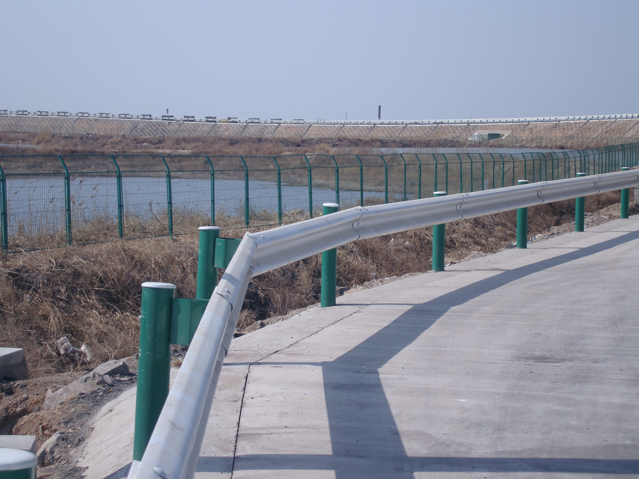 在選擇公路兩旁使用的道路圍欄網(wǎng)的時候要注意,應針對每條高速公路的具體情況,充分比較各種隔離網(wǎng)的性能,分析行駛安全感、壓迫感、視線誘導、了解的舒適性,并考慮與公路周邊環(huán)境的協(xié)調(diào),結(jié)合經(jīng)濟性、施工條件及養(yǎng)護維修等因素,在綜合分析的基礎(chǔ)上確定。道路波形梁網(wǎng)屬半剛性結(jié)構(gòu),具有較強的吸收碰撞能量的能力,具有較好的視線誘導功能,能與道路線形相協(xié)調(diào),外形美觀,可在小半徑彎道上使用,損壞處容易更換。對于車輛越出道外,有可能造成嚴重后果的片段,可選擇加強波形梁隔離網(wǎng)。
