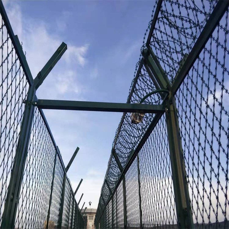 監獄鐵絲網美觀,大方,防腐蝕,防攀爬,它主要適用于監獄,機場,軍事基地和企業周圍的隔離保護,它采用了組裝式整體框架結構,產品美觀,有利于施工,安裝方便快捷。